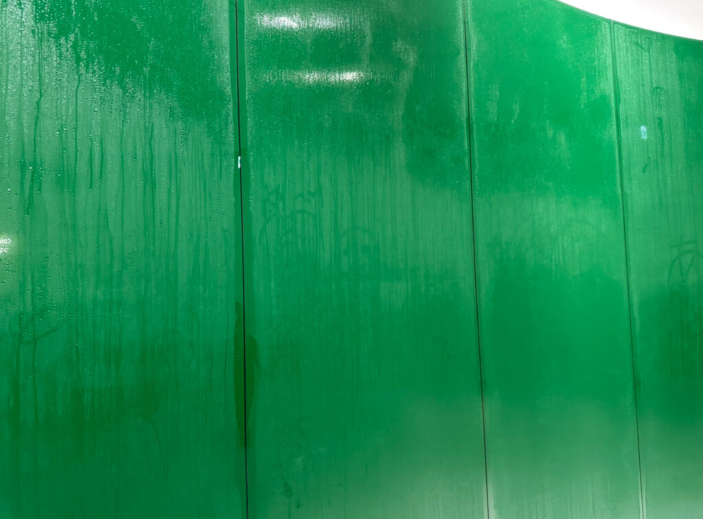 ラトビア館でまず目を引いたのは、壁いっぱいに広がる「結露の壁」。表面が少し曇っていて、指でなぞるとスーッと線が描ける仕組みになっています。