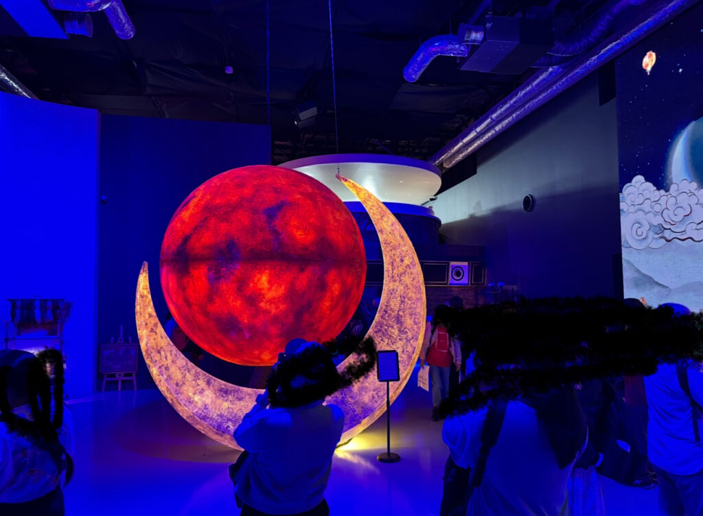 トルコ館は大人だけでなく、小さな子どもでも楽しめる展示構成でした。入場直後に現れる 月をモチーフにしたモニュメントが幻想的で、ぶれ子(1歳)は目を丸くしてじっと見つめていました。 光のゆらめきと柔らかい色合いが印象的で、“静かな驚き”のような反応をしていたのを覚えています。
