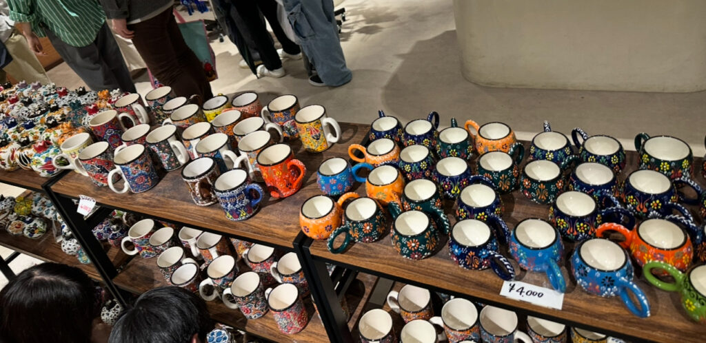 一方で、ショップエリアだけは別。 陶器やバルーンなどが並ぶ空間は人が集中しやすく、一気に動きづらくなる印象でした。 ぶれパパ家はそのままベビーカーで入ってしまいましたが、今思えば外と中で分担して動くのもアリだったかもしれません。 例えば、ショップ内はママが入って、外でパパがベビーカーを見ておくようにすれば、 限られたスペースでも無理なく楽しめたと思います。