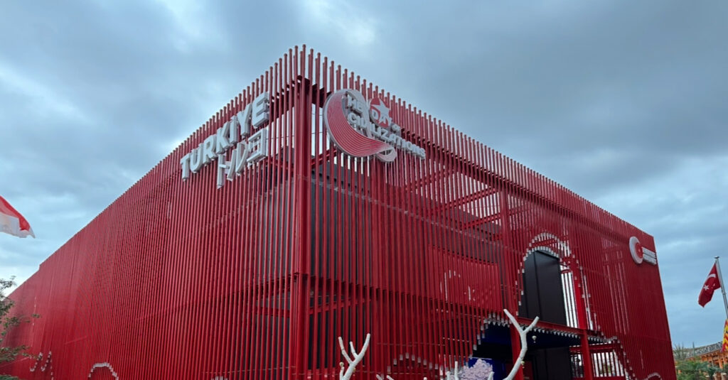 外観は赤を基調としたデザインで、一目でトルコと分かる印象的な佇まい。 館内でも同じ赤系の照明がアクセントになっており、文化的な一体感がありました。 他の国のパビリオンが最新技術やデジタル演出に重きを置く中で、 トルコ館は「人のつながり」や「歴史の記憶」を丁寧に伝える構成。 その静かな強さが印象的で、見終えたあとに心が温かくなるタイプの展示でした。