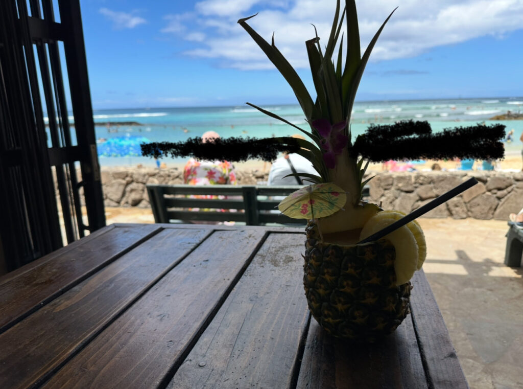 - 見た目:丸ごとパイナップルの存在感が強く、ワイキキの海と合わせると南国感が一気に高まる