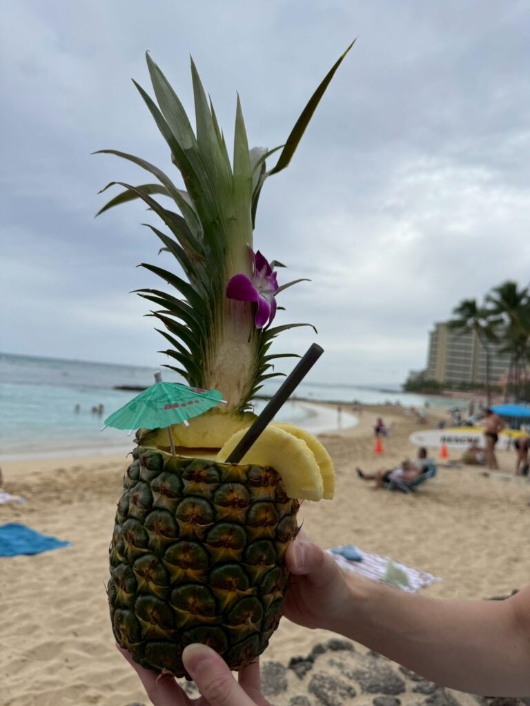 ワイキキの海、南国の空気、丸ごとパイナップルのジュース。