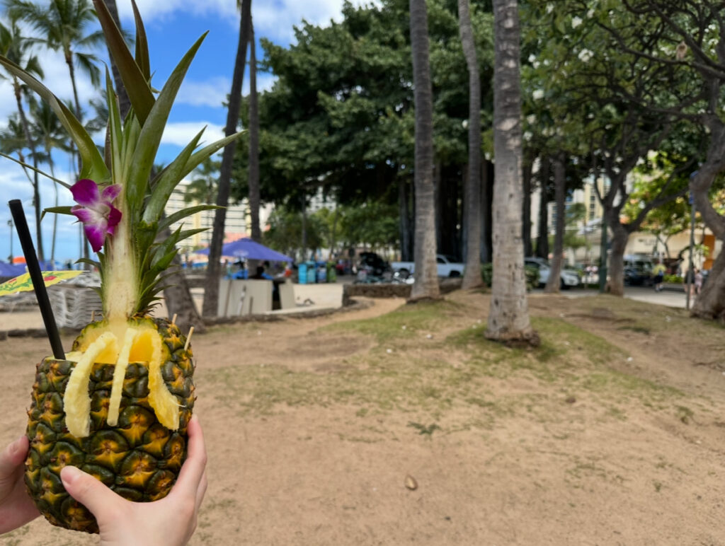 「歩いて気持ちいい → 景色がいい → そのままパイナップルジュースで休憩」という動線が作れるのは、ワイキキらしい楽しみ方だと思います。