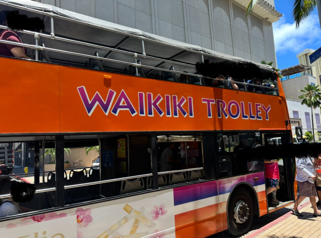 最も人気なのが、JCBカードで無料になるピンクライン。停留所が多く、ベビーカーごと乗車できるため子連れ旅行では定番です。時間帯によっては混雑しますが、座れれば快適。窓からワイキキの街並みを眺められるので、ちょっとした観光気分も味わえます。