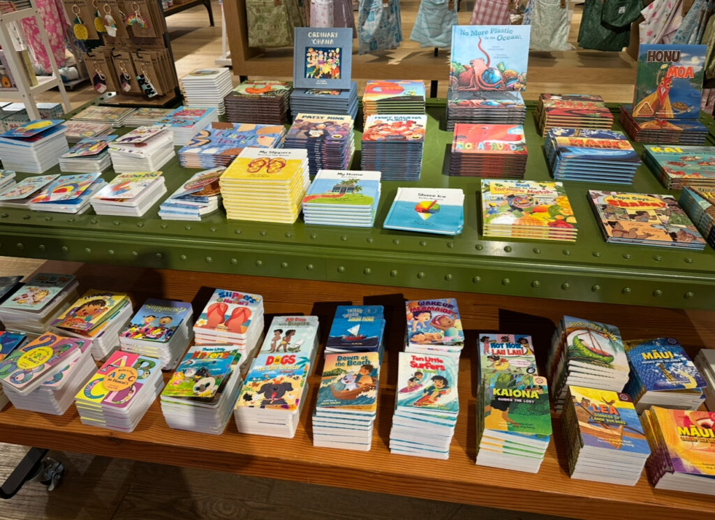 ノードストロームでは子ども服やおもちゃ、絵本のコーナーが非常に充実しており、ぶれママも夢中になっていました。ハワイらしいデザインの洋服もありましたが、日本ではすぐ季節が変わる時期だったため今回は見送り。ぶれ子の成長を考えると、来年にはサイズアウトしてしまいそうという話も。