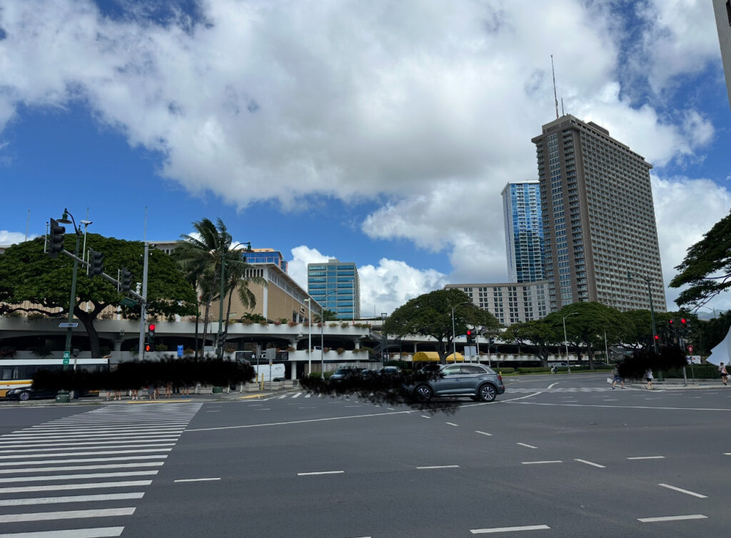 今回のぶれパパ家は徒歩でアラモアナへ。宿泊先のダブルツリー・ワイキキからは約15分と近く、ベビーカーを押しながらのんびり歩くにはちょうどいい距離でした。