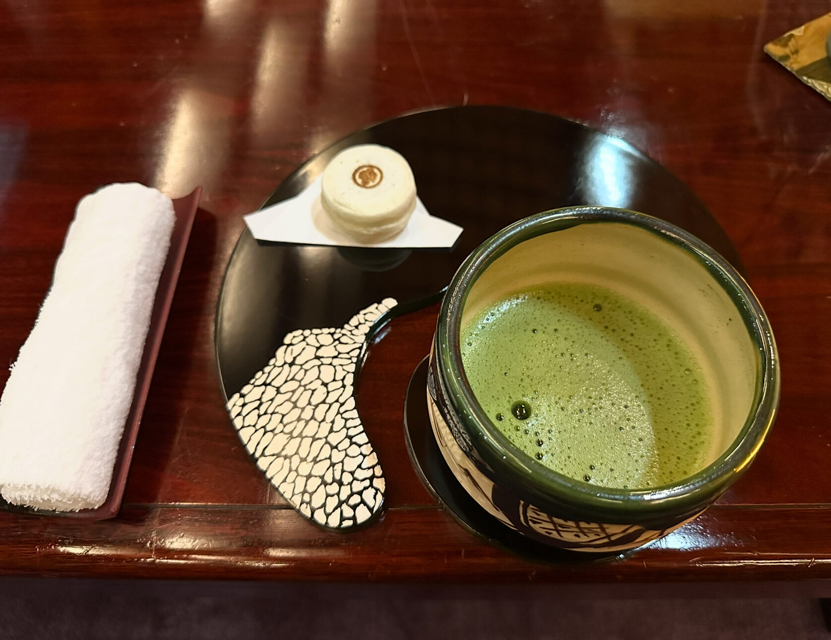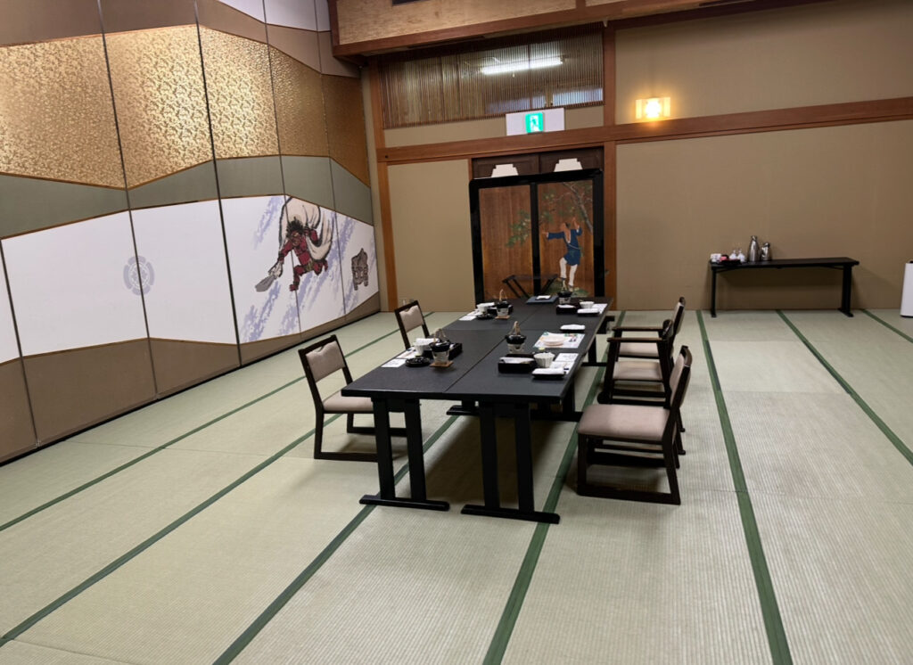 名古屋からわずか1時間ちょっとで到着できる近さにもかかわらず、館内に一歩入ると都会の喧騒を完全に忘れさせてくれる別世界。母は「近いのに温泉旅行気分が味わえるのは最高」と喜び、祖母も「高級感があって素晴らしい」と目を輝かせていました。ぶれママは「旅館ならではの非日常感がすぐに味わえるのは嬉しい」と感想を漏らし、家族全員が「ここに来て良かった」と自然に思えた瞬間。能舞台を眺めながら抹茶をいただく時間は、日常を忘れさせる小さな舞台演出のようで、4世代旅行ならではの特別感を強く感じさせてくれました。