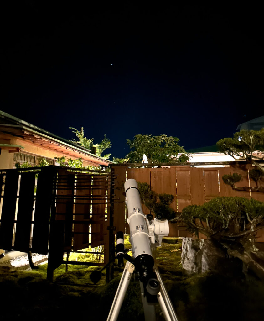 その後は星空観賞へ。スタッフが望遠鏡を用意してくださり、土星を見せてもらえました。肉眼でも空いっぱいの星が輝き、天の川が見えるほど。秋の夜風も心地よく、祖母が「近くでこんな星空を見られるなんて」と感激していたのが印象的でした。