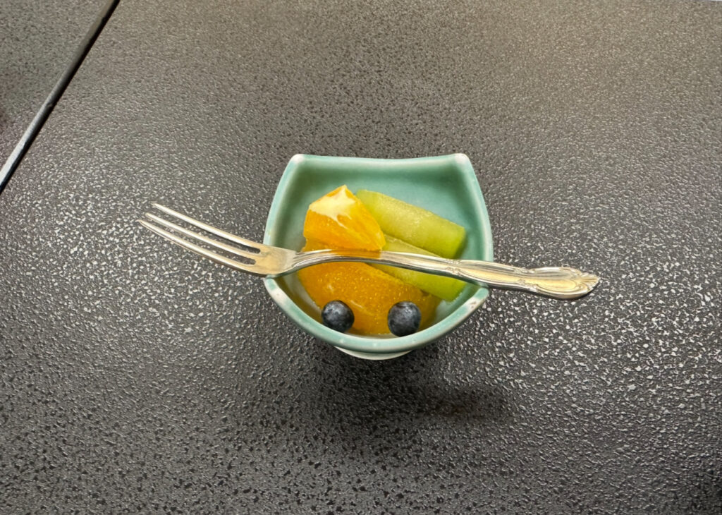 この日は白米・味噌汁・出し巻き卵を中心にいただき、ぶれ子は朝からご機嫌。夜と同じ会場なので動線がわかりやすく、ハイチェアも用意してもらえました。テーブル間隔にゆとりがあり、荷物の置き場にも困らないのが子連れに嬉しいポイント。スタッフさんが取り分け用の小皿やスプーンをすぐに出してくれたおかげで、落ち着いて食事が進みました。