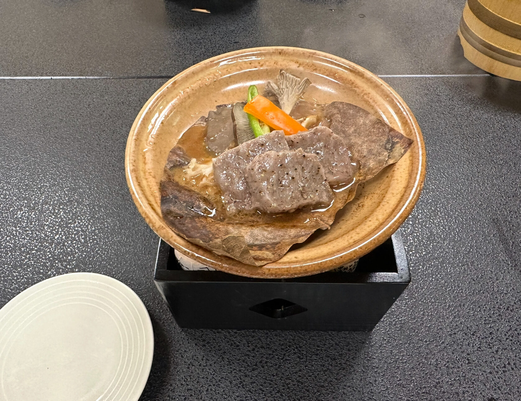 - 柔らかくジューシーな牛肉の朴葉焼きは、ぶれパパのイチオシ。