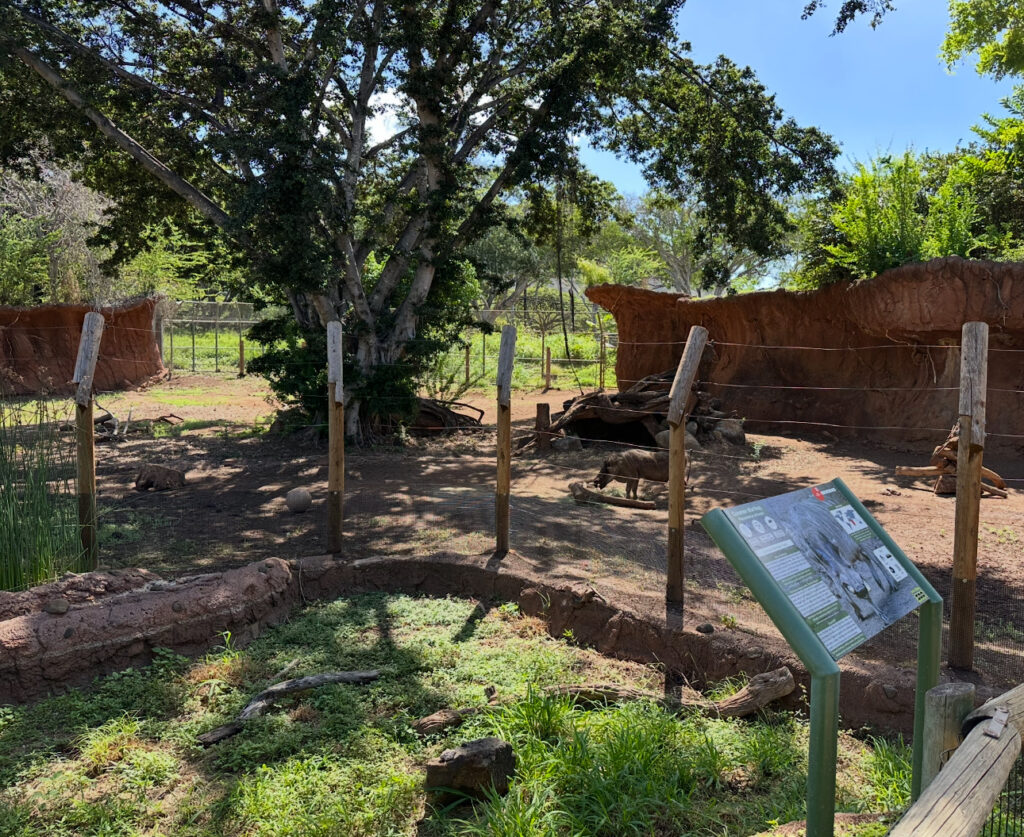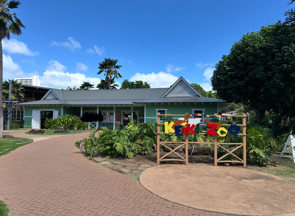 エントランスに入った瞬間、まず感じたのは強い「南国感」と風通しのよさ。ヤシの木が揺れる影と一面の青空に、ぶれママとぶれパパは思わず「やっと来れたね…!」と顔を見合わせてしまいました。今回のハワイ旅行の“本命スポット”だったこともあり、入口に立った瞬間から気持ちは最高潮。動物園でここまで胸が高鳴ったのは久しぶりでした。