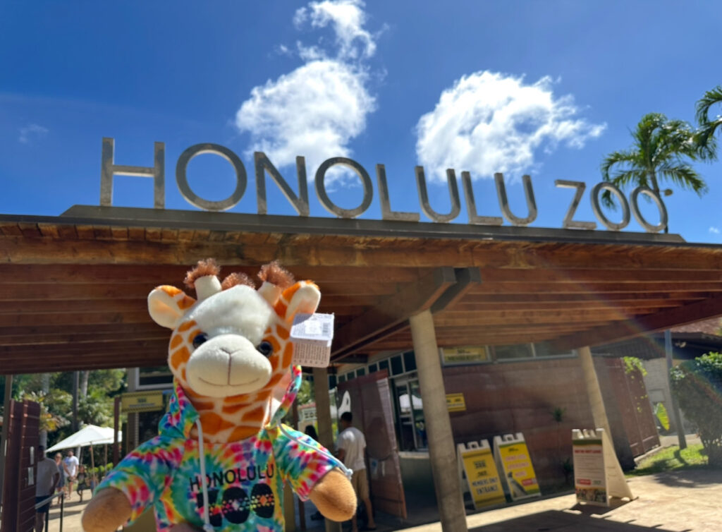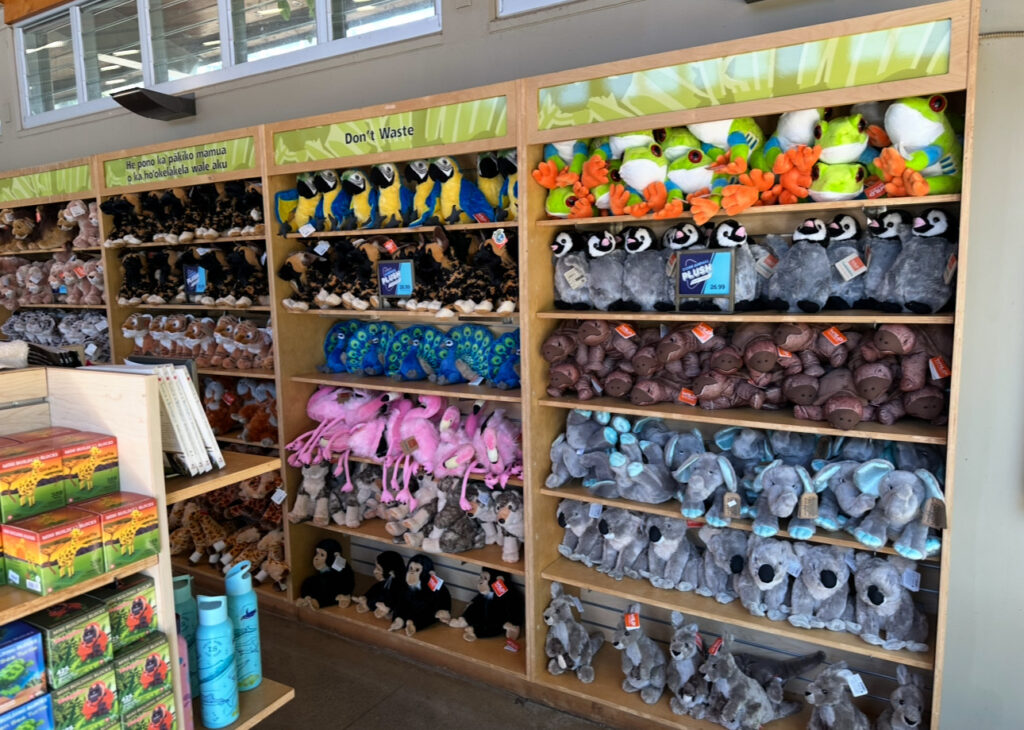 園内にはお土産ショップもあり、ぶれパパ家はここで「Honolulu Zoo と書かれたTシャツを着たキリンのぬいぐるみ」を購入しました。色合いも可愛らしく、旅の思い出としても、ぶれ子のお気に入りとしても大活躍。